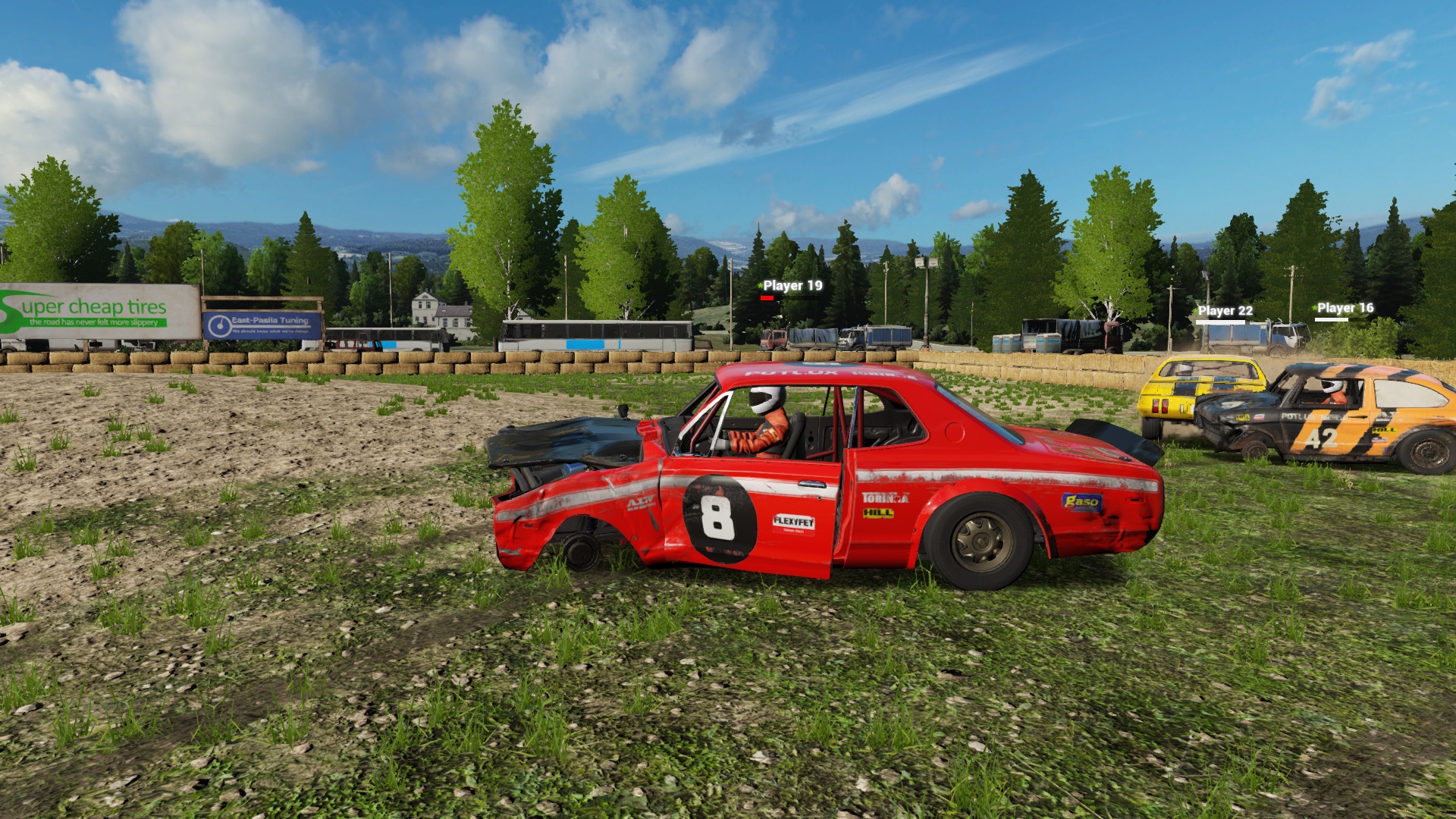 Overall damage, hit point damage, tire damage, and body deformation have been tweaked to better represent what would be expected in a real Demo Derby. No more continuous ramming with the front end and surviving, which forces a complete rethink of strategy compared to derby with current build.